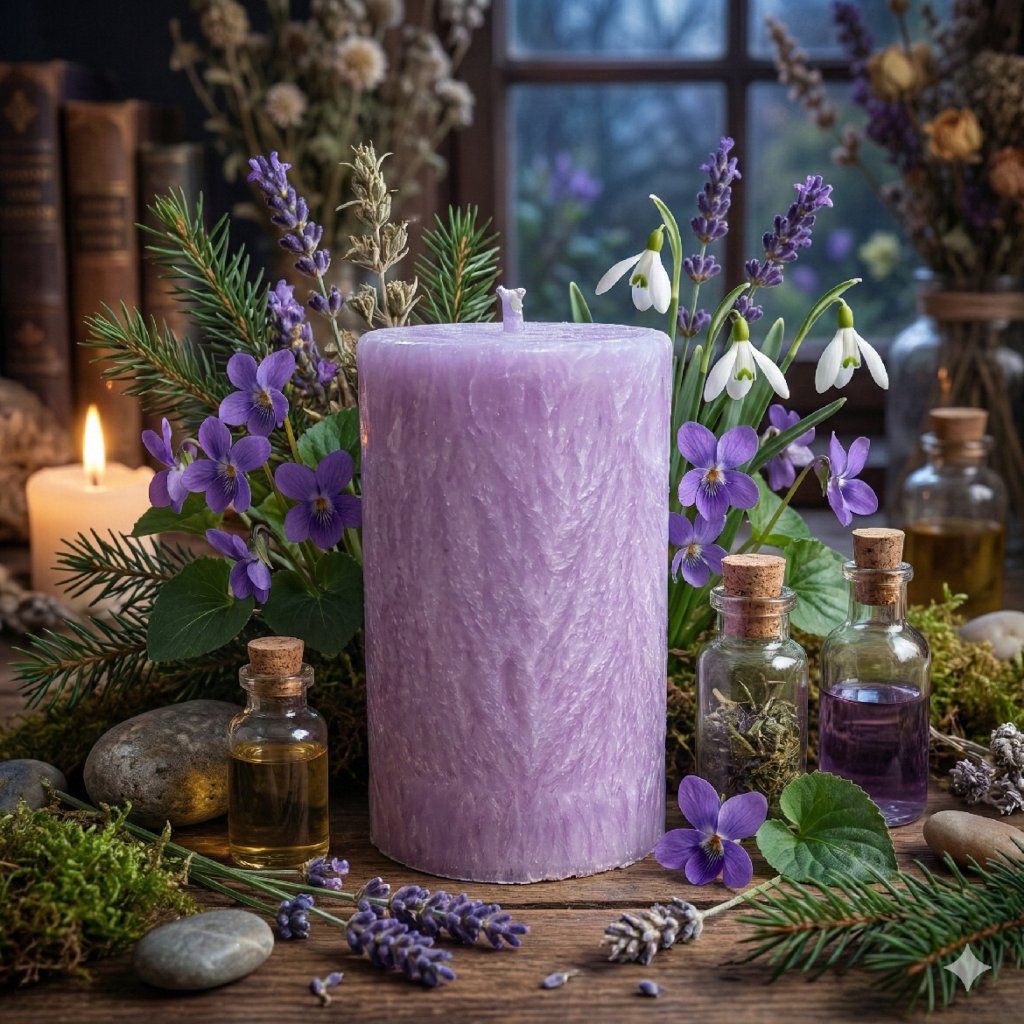 Tato jemná lila fialová svíčka je Hromničkou Lásky.