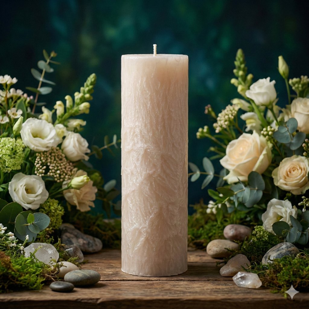 Tato vysoká bílá rituální svíčka je čistou energií Nebeské Úlevy.