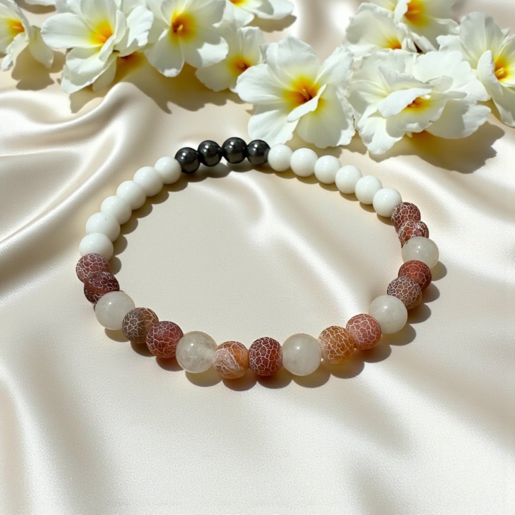 Tento náramek je jako jemný, ale nepropustný štít světla. Chrání tě před zlem, závistí i těžkými energiemi, které se tě snaží stáhnout dolů. Přináší klid, pocit bezpečí a jistotu, že ať se děje cokoliv – vesmír stojí na tvé straně. Je to talisman, který tě vede k pozitivním změnám a naplňuje tvůj den vírou, že všechno dobře dopadne.