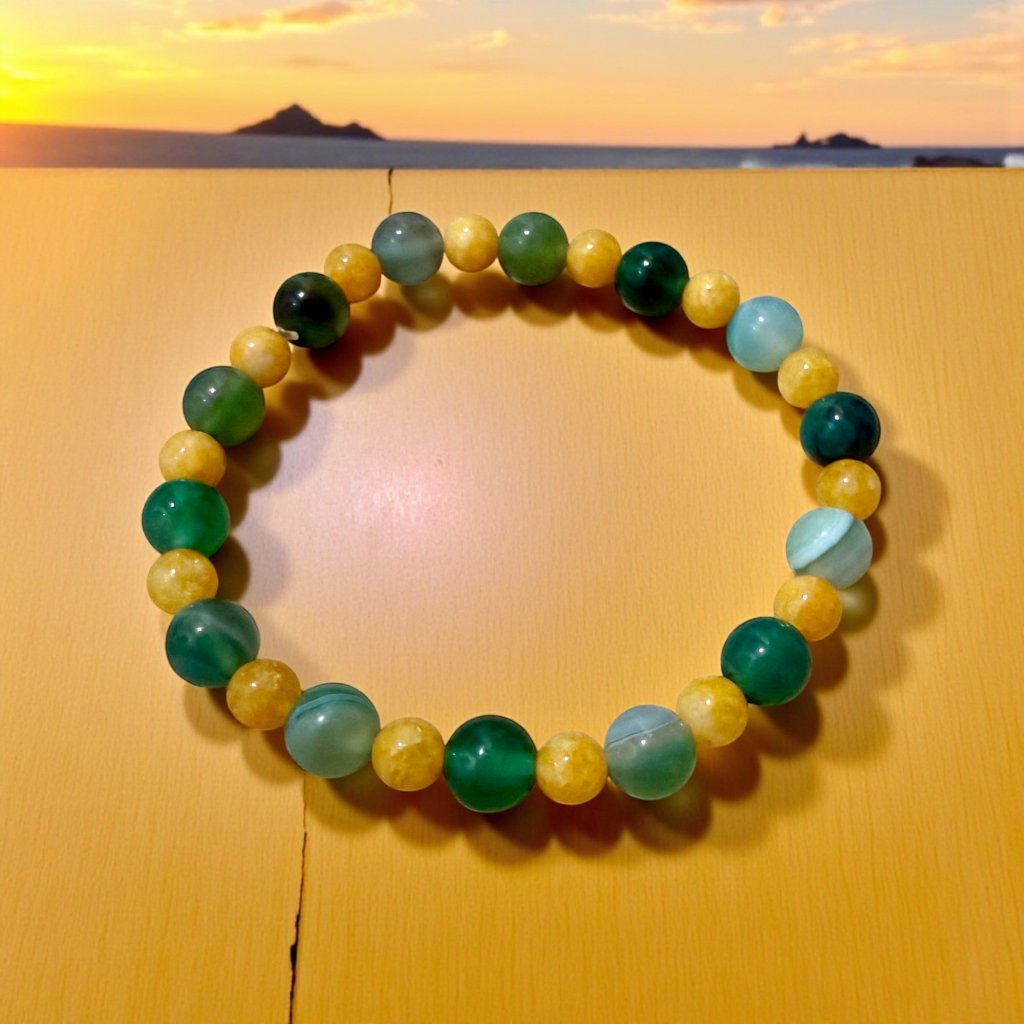 Tento náramek září jako slunce po bouřce. Jeho energie ti připomíná, že ať se děje cokoliv, všechno nakonec dobře dopadne. Přináší úlevu, sílu a klid do duše. Pomáhá, když se potřebuješ zvednout, když ztrácíš víru, nebo když tě život zkouší. Probouzí tvou životní jiskru, dodává optimismus a odvádí tíhu i únavu.