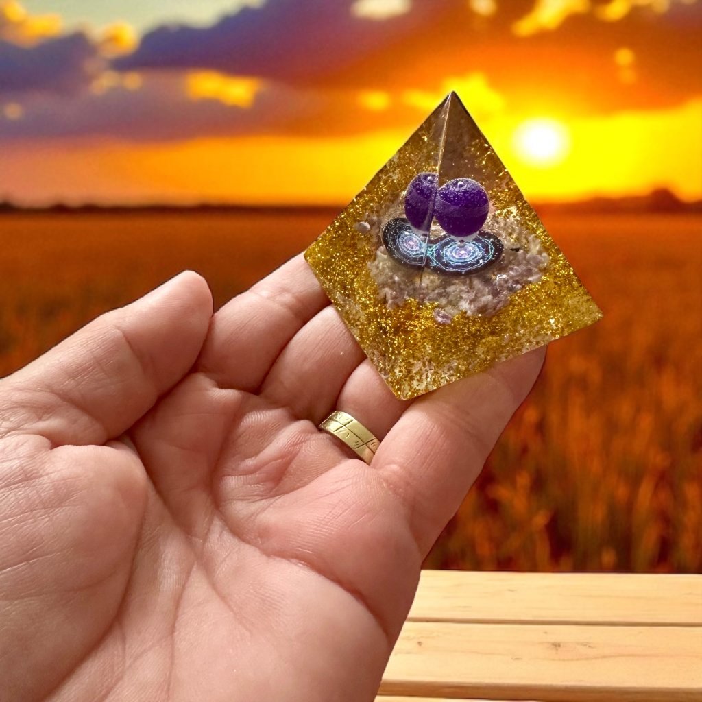 Tahleta nádherná pyramida není jen ozdobou. Je to vesmírný magnet na štěstí, finance a životní úspěch. V jejím středu pulzuje kombinace orgonitové energie a posvátné síly ametystu, která harmonizuje, čistí a zároveň aktivuje tvůj osobní potenciál.