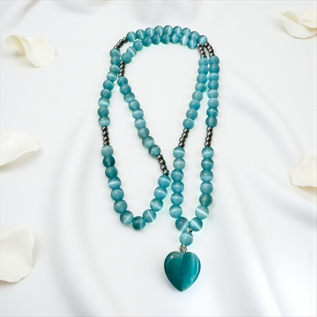Tento unikátní talisman z modrého kočičího oka je doslova živý šperk. Není to jen ozdoba – je to strážce vaší energie a přání.