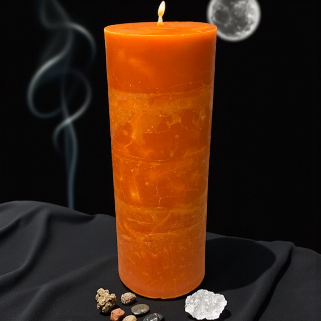 Oranžová čarosvíčka s brutálně silnou energií přitažlivosti, touhy a magnetismu. Je zasvěcená tělesné kráse, charismatu a vášnivé síle. Aktivuje v tobě tu část, která se nestydí zářit. A když hoří… probouzí i oči toho, kdo se má dívat.