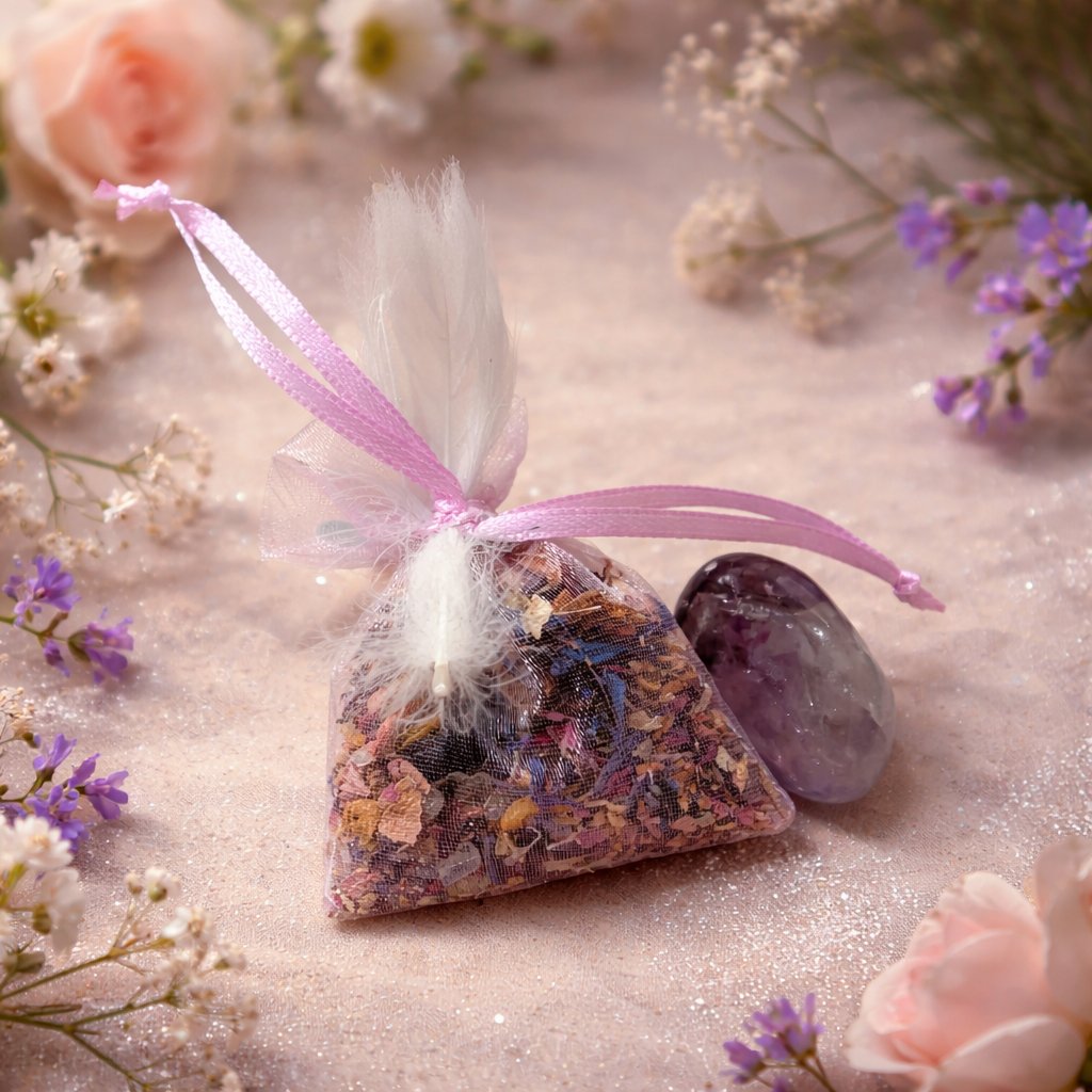 ✅ Konec strachu a stresu – Energie ametystu a bylinek odplavuje úzkost a vnitřní napětí. 🌊