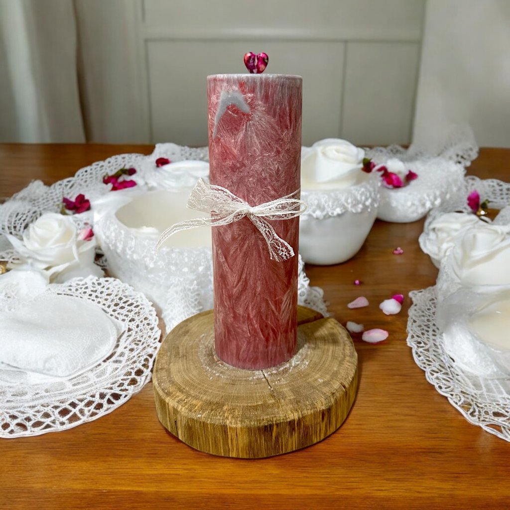 Upozornění: než svíčku zapálíte, je nutné sundat dekorativní srdíčko a z bezpečnostních důvodů nezapomeňte sundat i ozdobnou krajku.