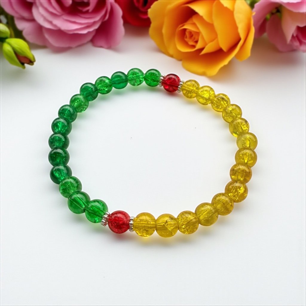 Brána hojnosti byla vytvořena v mimořádném čase – během Lví brány a nechána přes noc pod širým nebem při úplňku, aby nasála nejsilnější energii přitažení hojnosti a ukončení starých bloků. Její barvy – žlutá, zelená a červená – jsou tradičními barvami prosperity, odvahy a životní síly. Tento náramek pracuje jako magnet pro finance, zisk a stabilitu, zatímco ti pomáhá uzavřít problémy spojené s penězi.