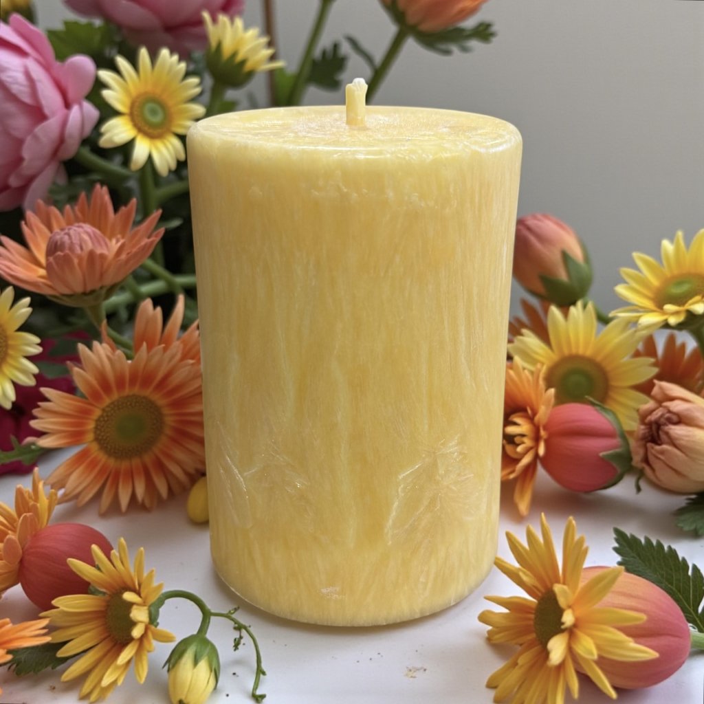 Tato nádherná žlutá svíčka září jako první jarní sluníčko. Je to čistá esence radosti a optimismu.