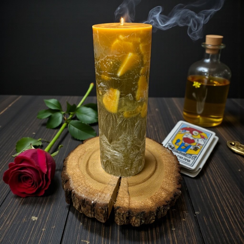 Tato unikátní dvoubarevná svíčka je absolutní špička v magii spravedlnosti.