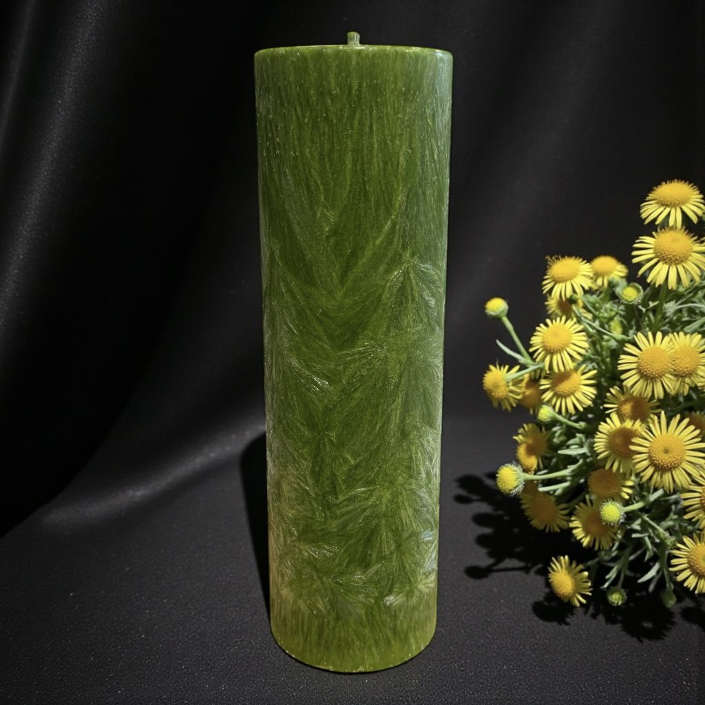 Tato vysoká rituální svíčka nese specifickou zelenou frekvenci, která funguje jako "Antivir na dluhy".