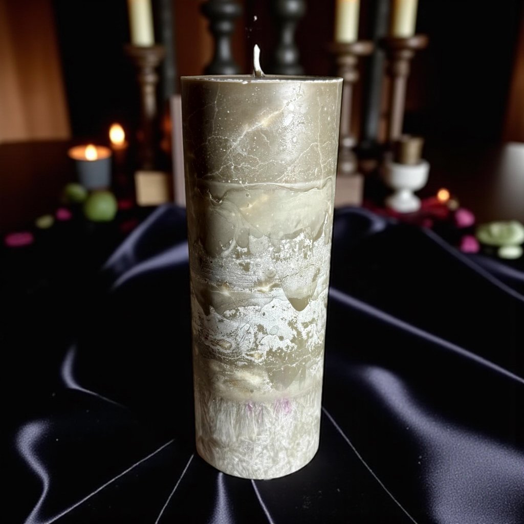 🕯️ Velká rituální svíčka. Zapaluj večer za tmy a nech hořet 4–6 hodin v kuse, aby se magie plně aktivovala. Sleduj plamen a vnímej, jak se brána za starým uzavírá…