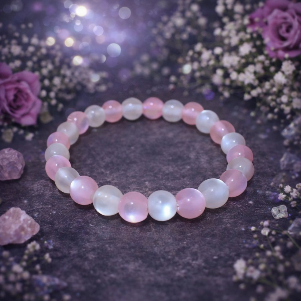 Připravili jsme pro vás tento něžný náramek z bílého a růžového Kočičího oka.