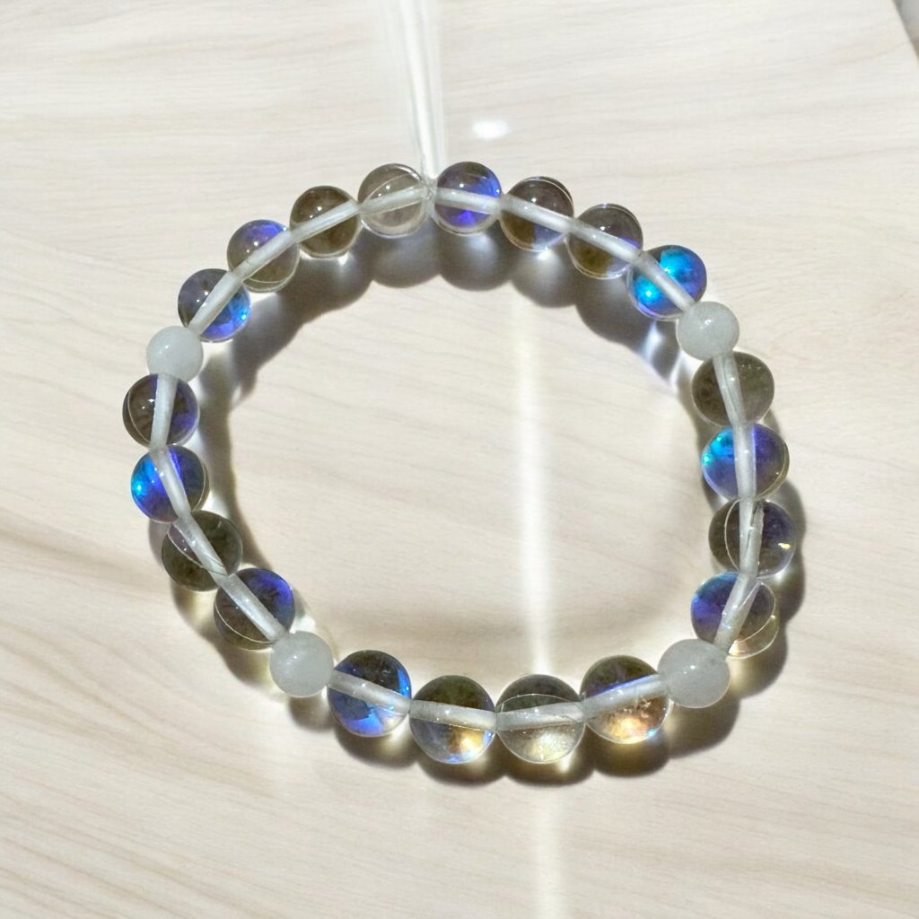 Tento náramek v sobě nese zářivou sílu světla. Kombinace opalitu a matného křišťálu přináší úspěch, štěstí a klid do každého dne. Je to ochranný náramek pro každou ženu, která touží po pohodě, harmonii a šťastných vesmírných náhodách.