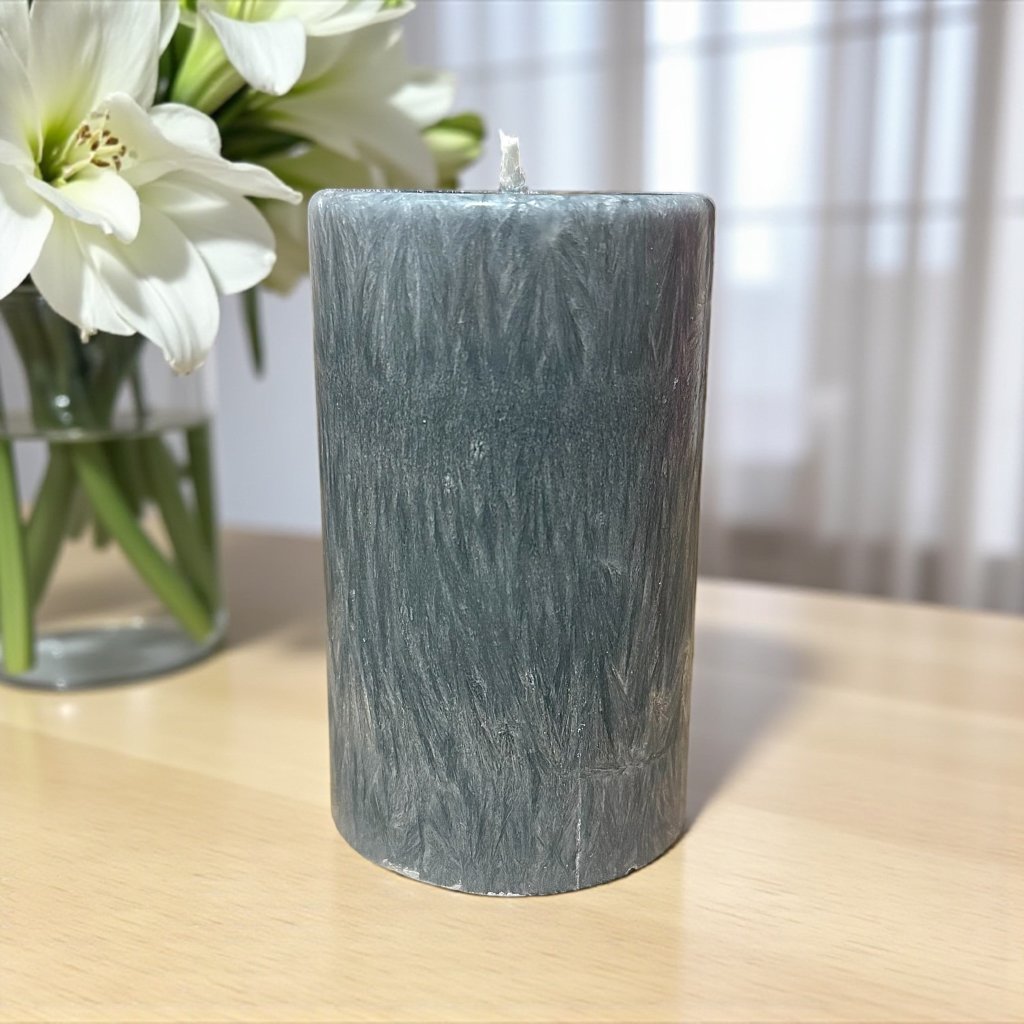 Šedostříbrná svíčka magického večera, luny a tajemství.