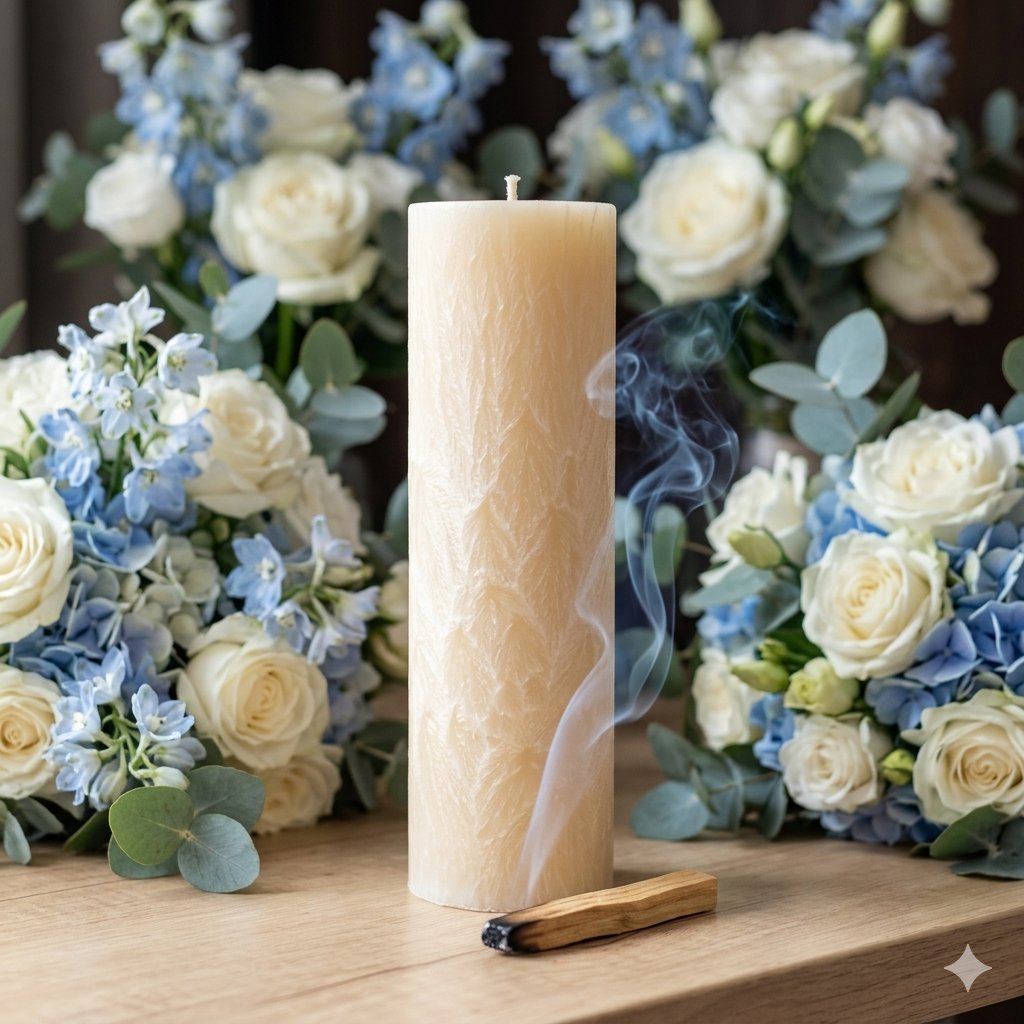 Tento čistý rituální oheň není jen vosk a knot. Je to surová, prastará síla přírody, která nekompromisně vymetá veškerou temnotu. Tato svíčka v sobě nese esenci bílé šalvěje, nejmocnější rostliny pro očistu, a její vosk prošel jejím posvátným kouřem. Funguje jako bleskurychlé magické vykuřovadlo, které do tvého života vrací zářivý klid a všechno krásné! ⚪
