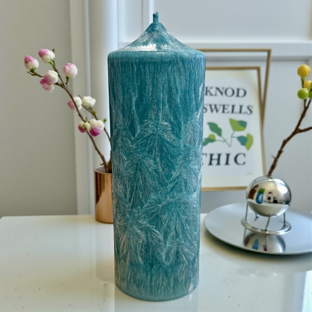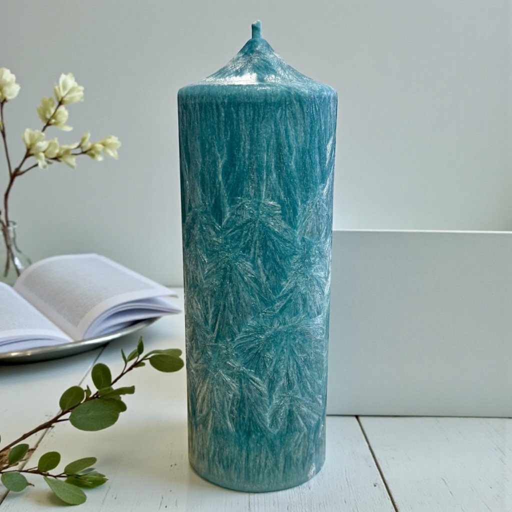 Tato velká rituální svíčka má fascinující barvu "Tajemství moře".