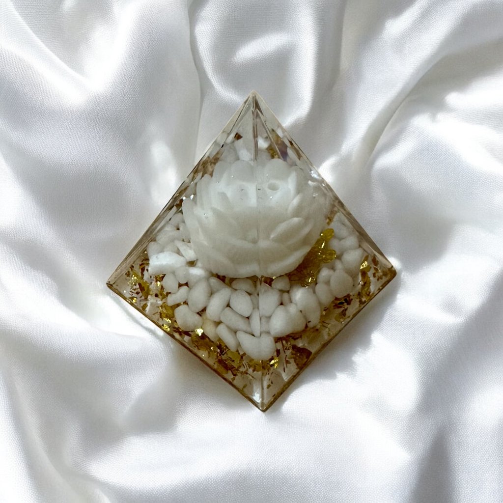 Tato bílá pyramidka se zlatavým třpytem byla požehnána přímo u nás v Messině – prošla očistným kouřem Palo Santo a je připravena otevřít bránu hojnosti… 🌟