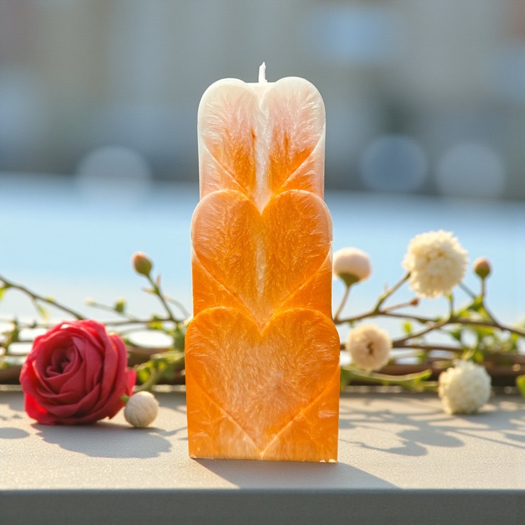Vůně sladkého pomeranče a růžového nektaru naplní prostor jemností a radostí, zatímco světlo svíčky přitahuje to, po čem srdce touží – návrat, naplnění, porozumění i nový začátek.