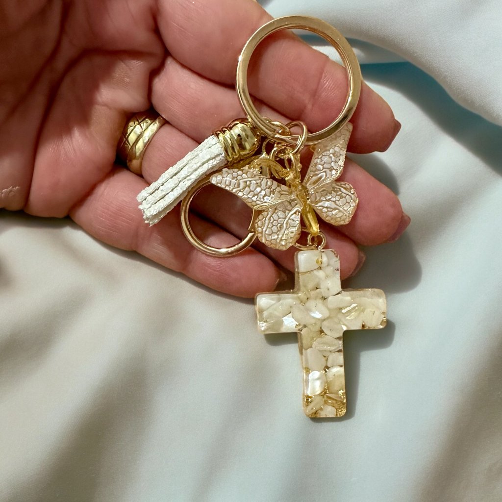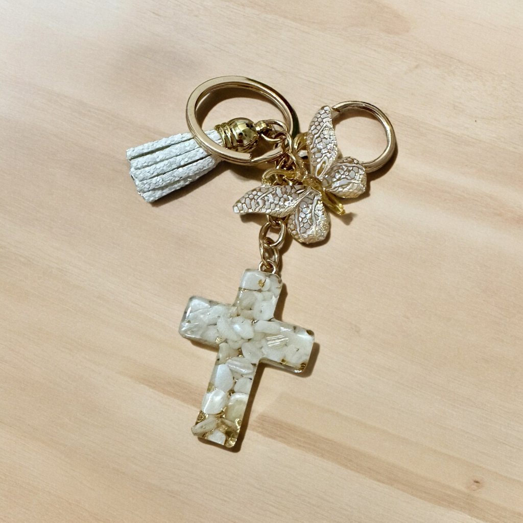 Symbolika magie – motýl = nečekané životní štěstí, kříž s perletí = Nebeská pomoc, požehnání, ochrana.