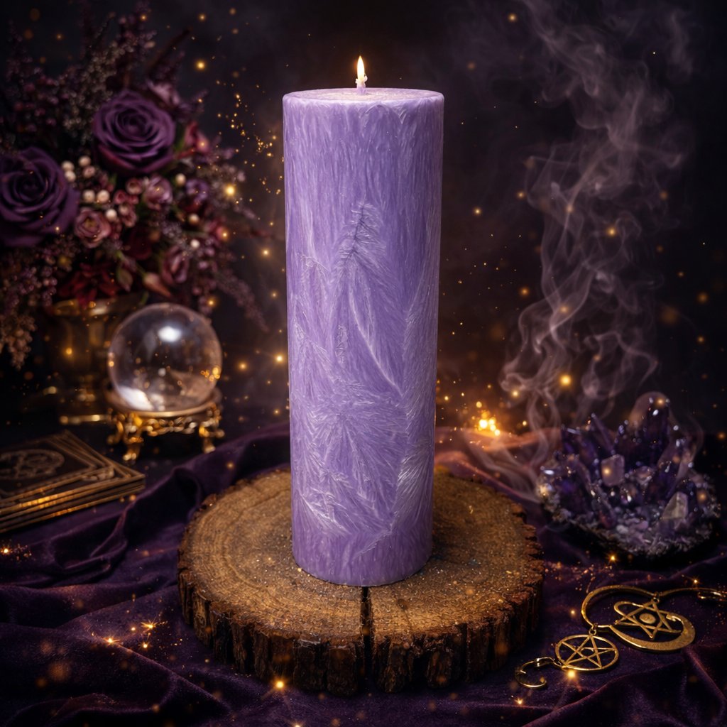 💜 OCHRANNÝ ŠTÍT LÁSKY: NÁVRAT ŠTĚSTÍ & BLOKACE ZLA 💜 (Vysoká rituální svíčka s energií Ametystu, Růženínu a Křišťálu)